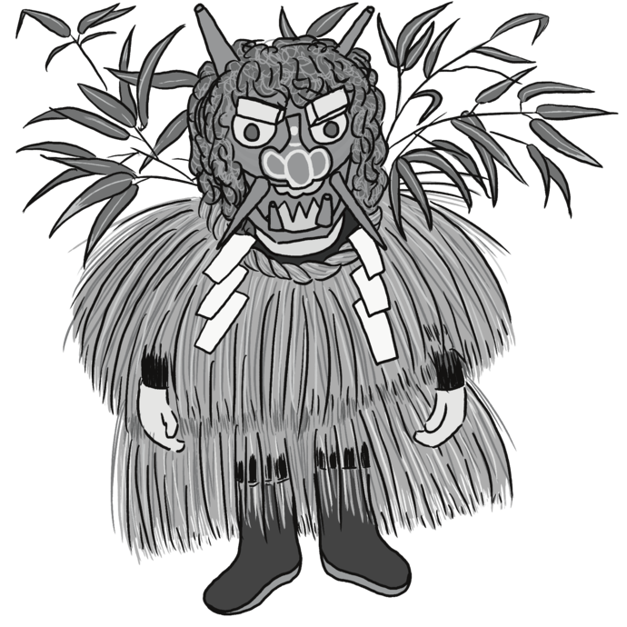 下浜羽川地区の「ヤマハゲ」は、「福の神」と書かれたお札を持った