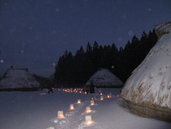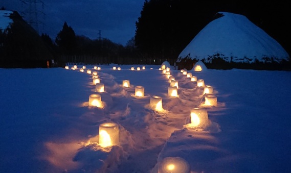 ミニかまくらやミニ灯籠が灯る幻想的な遺跡を鑑賞します。