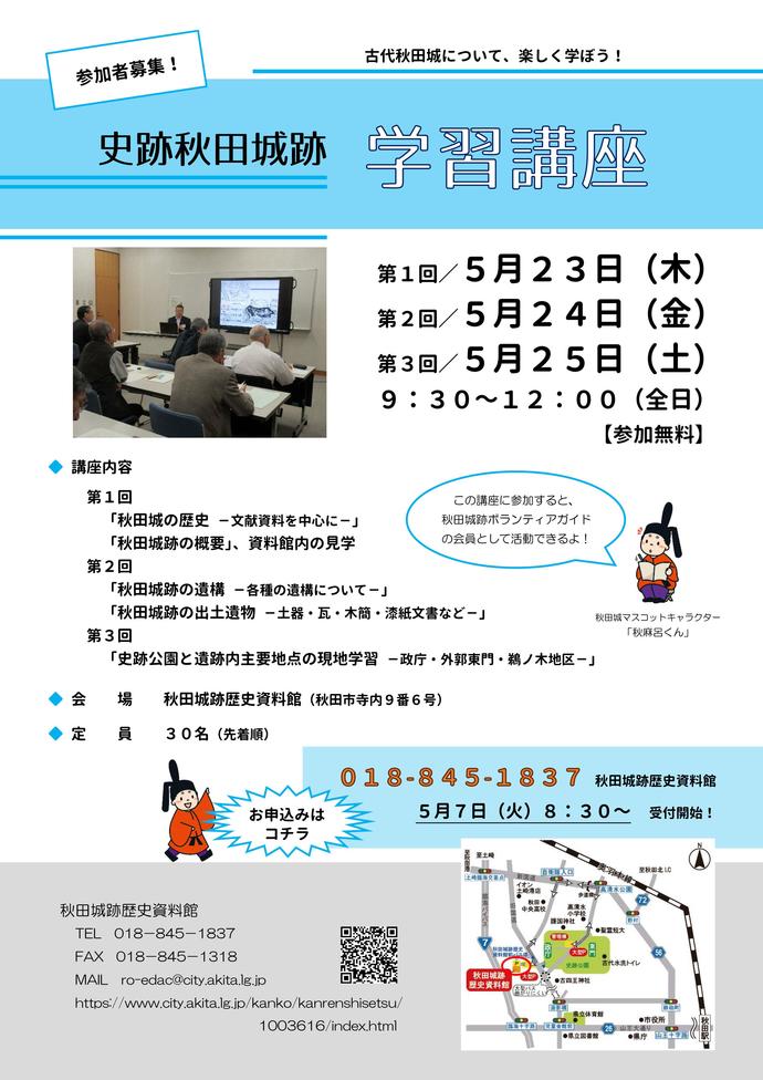 申し込みは秋田城跡歴史資料館(018-845-1837)へお願いします。 - 費用