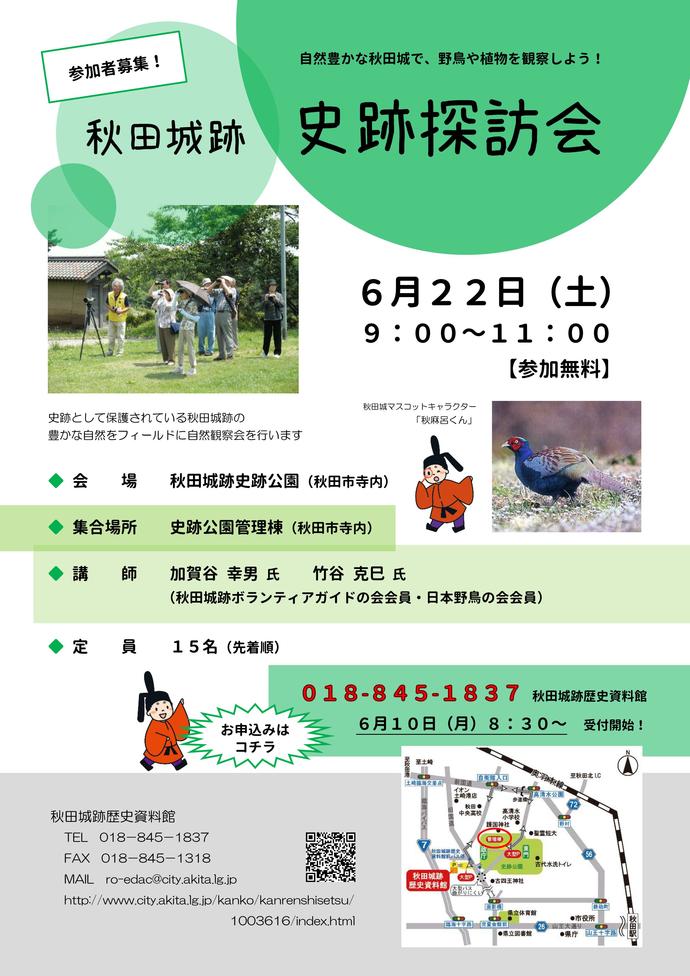 申し込みは秋田城跡歴史資料館(018-845-1837)へお願いします。 - 募集人数
